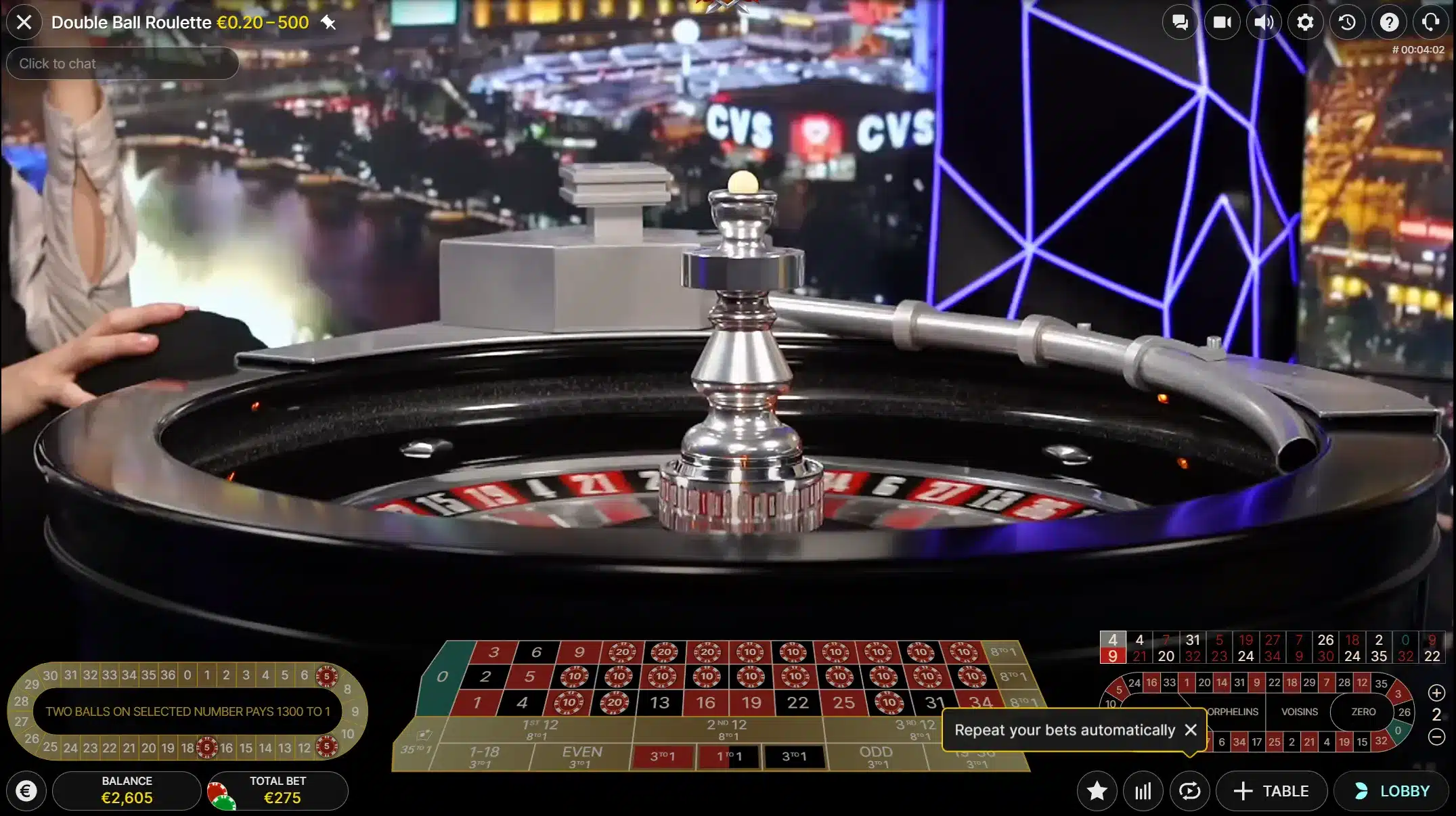 One key point in double ball roulette is the huge 1300x payout you get when both balls land on the number you picked. The odds of this happening are about 1/38. Even though this sounds tough, getting to know the double ball roulette 130x strategy can help you out. The house edge depends on the type of wheel—5.33% for a double-zero and 2.78% for a single-zero.